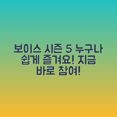 결론적으로, 자신에게 맞는 방법으로 보이스 시즌 5를 즐길 준비를 하며, 기대감을 더욱 키워나가는 것이 좋겠습니다.