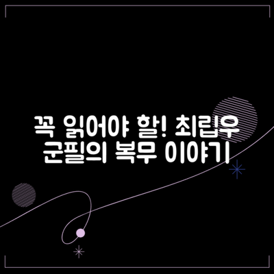 군복무를 앞둔 많은 이들이 어떤 준비를 해야 할지 고민합니다. 특히, 최립우 군필처럼 성공적인 전역을 원하는 젊은이들은 더욱 신경 쓰게 됩니다.